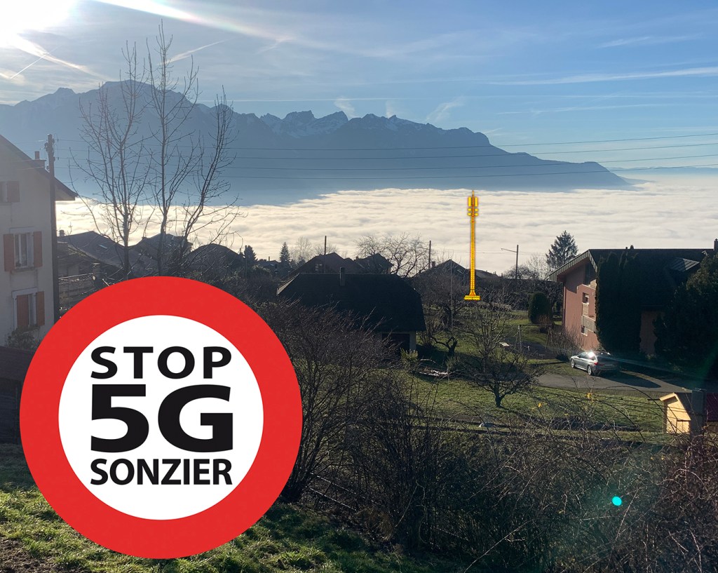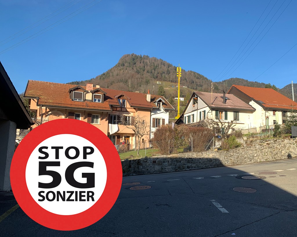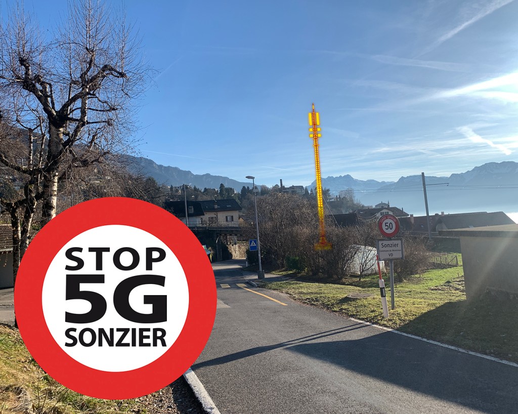 Swisscom prévoit l’installation d’une antenne 5G qui se situerait au coeur du village de Sonzier sur un bien-fonds leur appartenant (parcelle 3375). Le terrain jouxte la voie de chemin de fer.